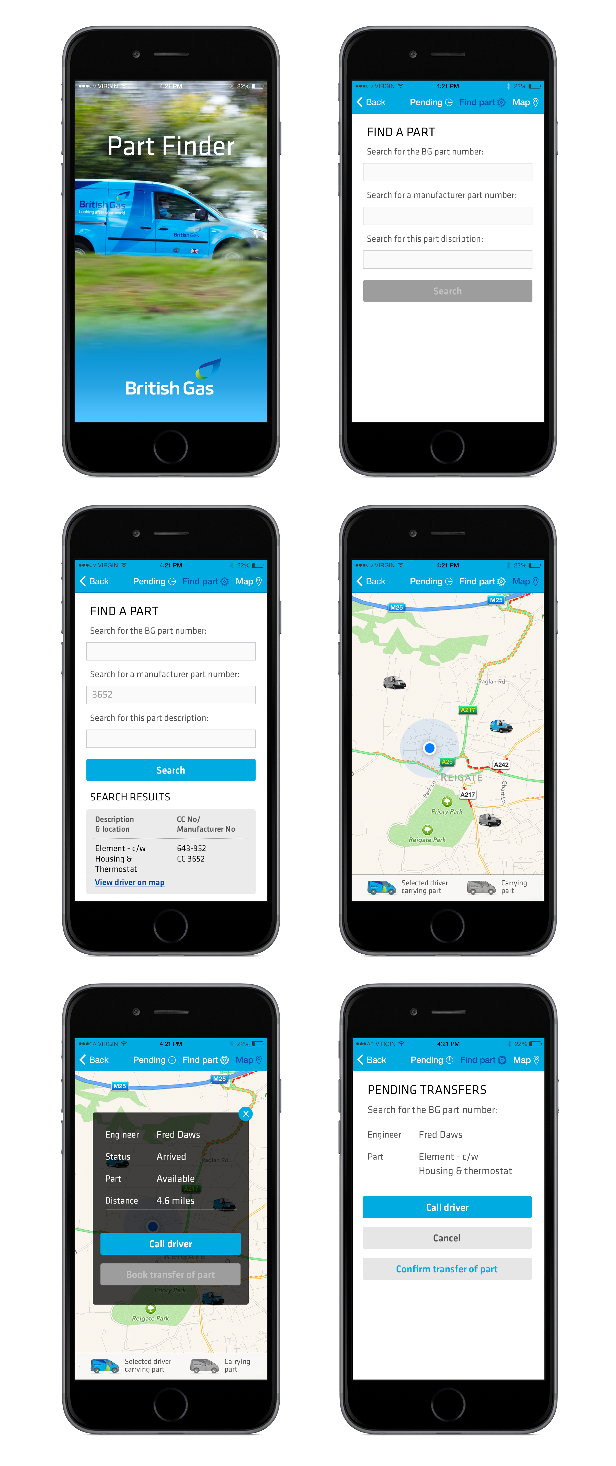 Native app concept for Engineers to find and share parts with one another when out in the field.