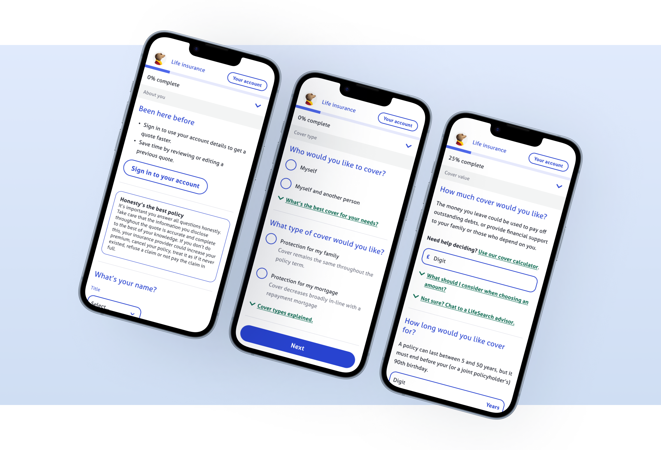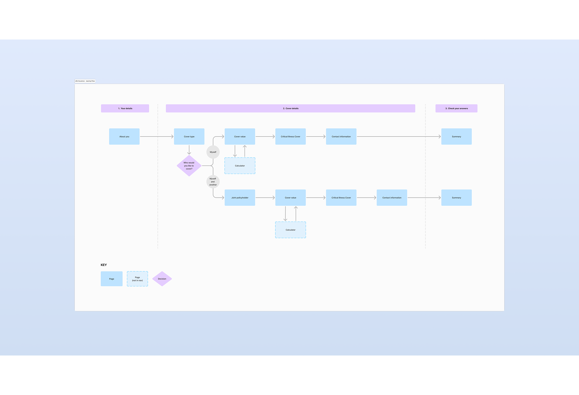 My first project through the door was to reimagine an 8 year old digital Insurance journey using the design system.