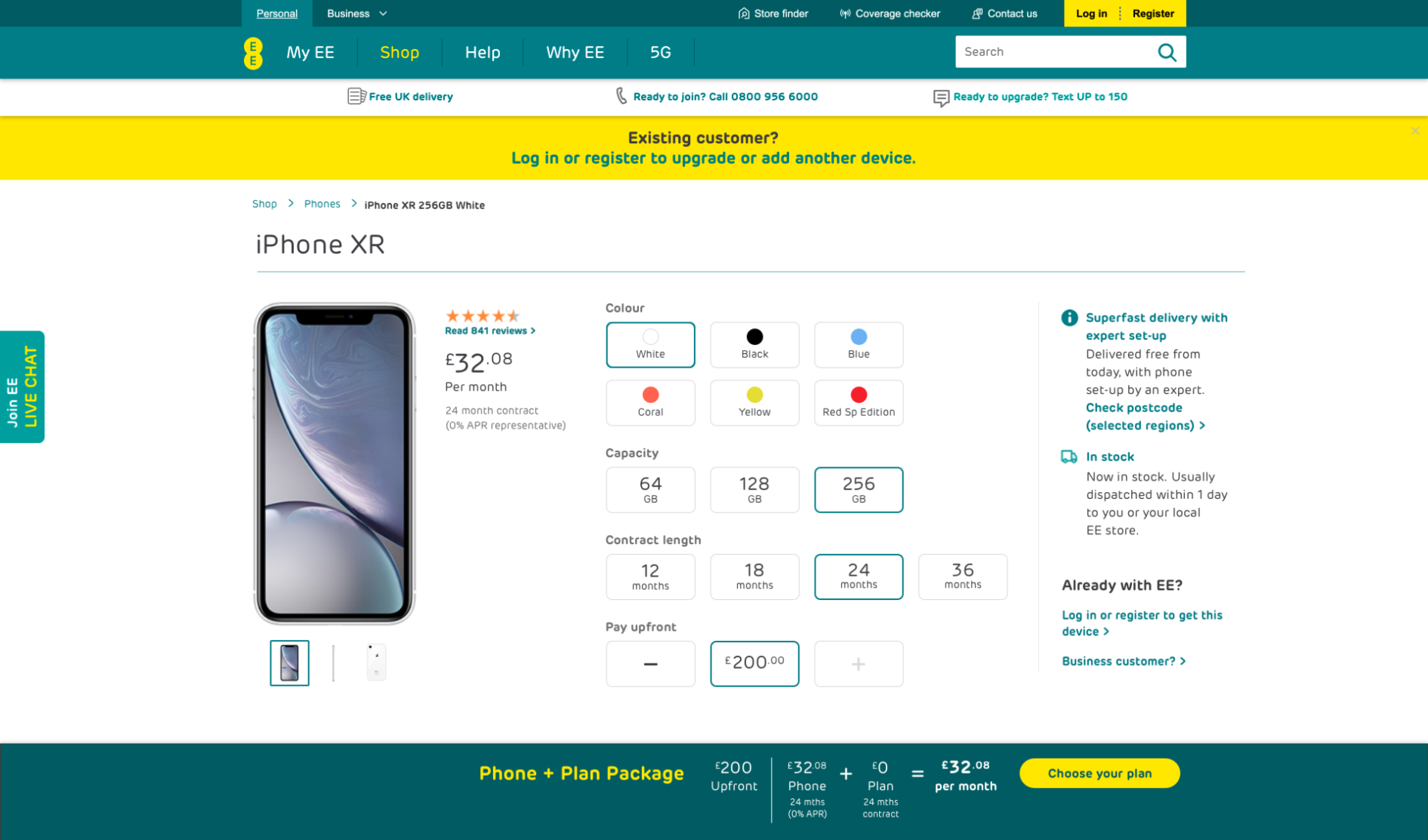 When I buy a phone from EE, I pay a monthly fee over a 2 year contract for the phone and line rental.